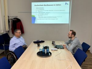 However, the "shift change" did not only work in one direction. While Wagner was working in the recycling workshop, Nordhausen University of Applied Sciences welcomed Dirk Hamel as a guest. Hamel, who is in a wheelchair, was given a whole day's insight into the diversity of university life. After a welcome and an introduction to the university's structures, a tour of the campus took in the library, the Study Service Centre, the Language Centre and a lecture theatre. The programme also included a discussion with a representative of the staff council.